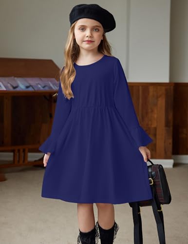 HOT ! Arshiner Girls Long Sleeve Floral Pleated Swing Dress Kids Casual Dresses with Pockets for 4-13 Years