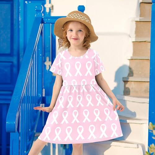 Breast Cancer Awareness Pink Ribbon Toddler Girls Dresses Easter Spring Dress Short Outfit Children Dress 2t 5