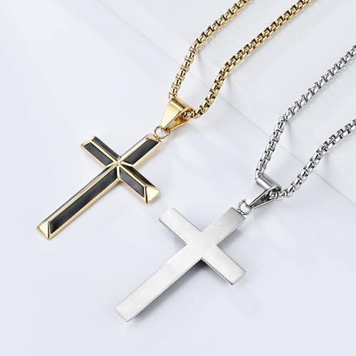Cross Necklace for Men,Stainless Steel Black Gold Silver Jesus Christ Crucifix Pendant Necklaces Jewelry,60cm Rolo Chain 2