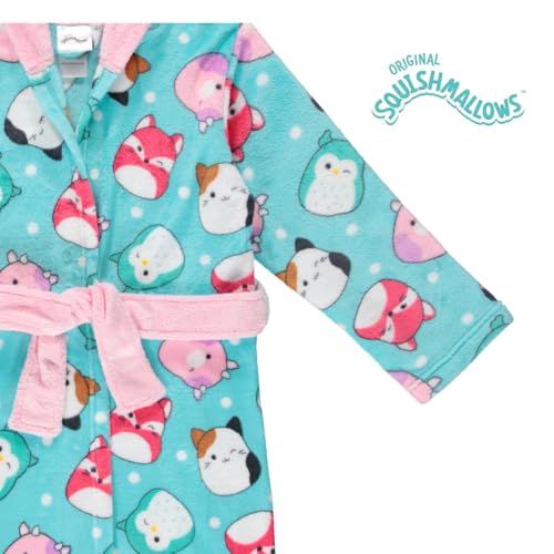 HOT ! Squishmallows Girls Fleece Kids Hooded Robe - Super Soft Plush Kids Spa Bathrobe with Pockets, Sizes 6-12 - Official Product