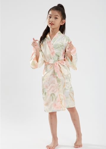 QXQTER Girls Floral Silk Kimono Robe Wedding Flower Girl Robes Dressing Gown Bathrobes Housecoat 1