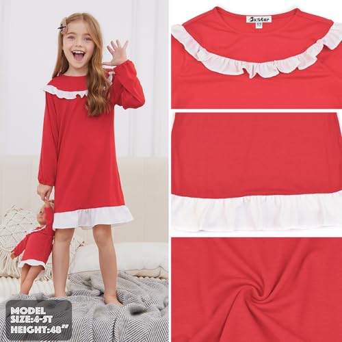 Jxstar Matching Gilrs&Doll Nightgowns Ruffle Trim Long Sleeve Pajamas Sleepwear Night Dresses 3