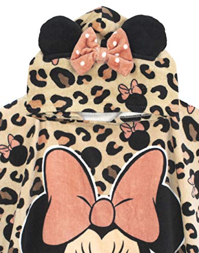 • SOFT MINNIE MOUSE 3D EARS & BOW PONCHO TOWEL FOR GIRLS - The children’s Disney poncho towel features an all over leopard print with a Minnie Mouse character face print and adorable 3D ears and dotty bow across the hood! The back of the magical poncho reads ‘MINNIE MOUSE’ making an awesome must have Disney gift!
