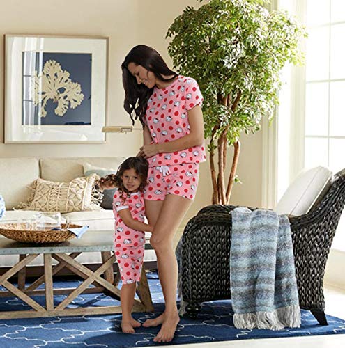 • Featuring Hello Kitty on a coral background with pink polka dots. 2 pieces crew neck short sleeve shirt and boxer shorts with elastic waistband for better fit. This set is made of 100% cotton for a soft and comfortable girls pajama.