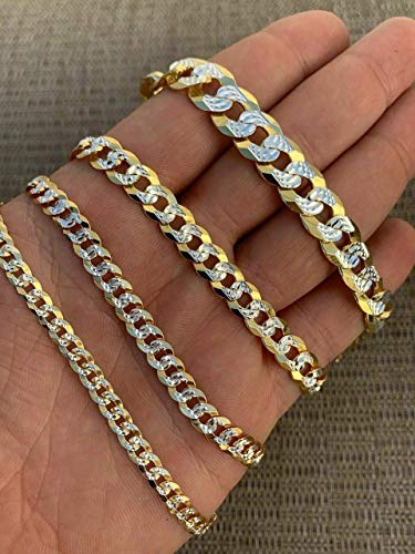 More information about HarlemBling Mens Or Ladies Cuban Link Bracelet - 14k Yellow Gold & Solid 925 Sterling Silver Two Tone Diamond Cut - 5mm 6mm 8mm 10mm - 7-9" - Made In Italy Miami Cuban Bracelet