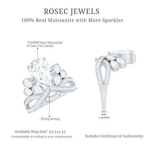 Certified Moissanite Designer Engagement Ring in Silver, D-Vs1 Quality, 7X10mm Moissanite Statement Ring - Ready to Gift 4