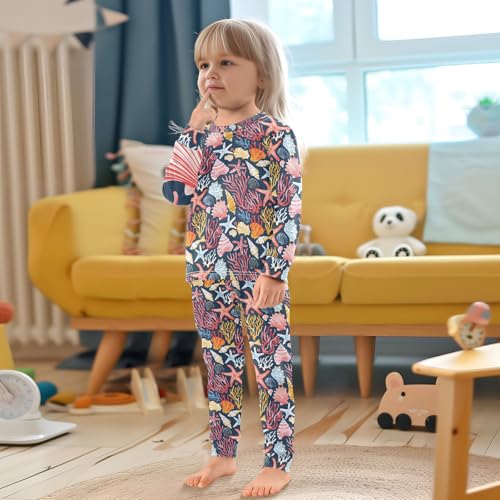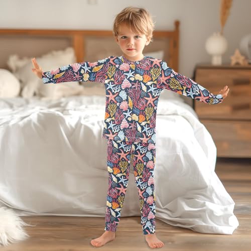 ALAZA Beautiful Seashells Corals Starfishes Pajamas Long Sleeve Sleepwear 2-Piece Pajama Set 1