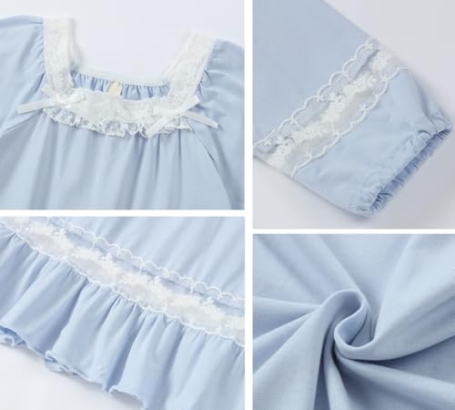 Girls Nightgowns Long Sleeves Sleepwear Cotton Plaid Nightdress Cute Pincess Sleep Dress Kids Lace Nighties 3