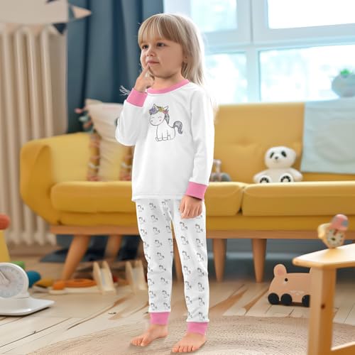 Cartoon Pajamas Set Flower Unicorns Long Sleeve PJs Cotton Jammies Sleepwear Top and Pants 6