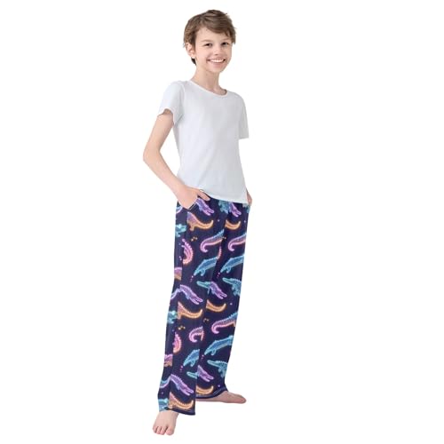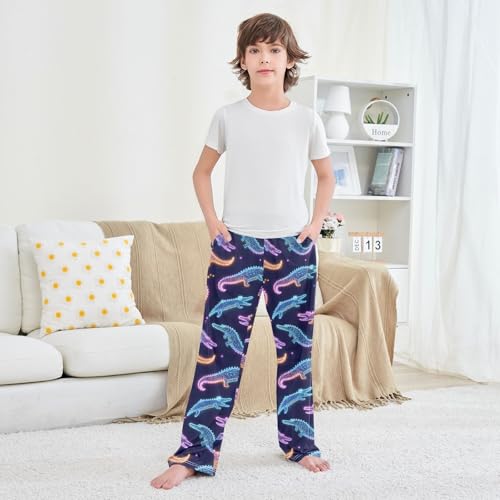 Pajama Pants Lounge Sleep PJ Bottoms Sleepwear Elastic Waist Drawstring S Alligator Neon 1