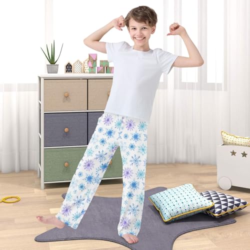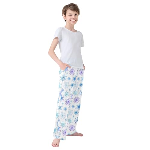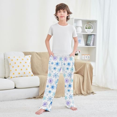 Pajama Pants Lounge Sleep PJ Bottoms Sleepwear Elastic Waist Drawstring S Blue Purple Snowflakes 5