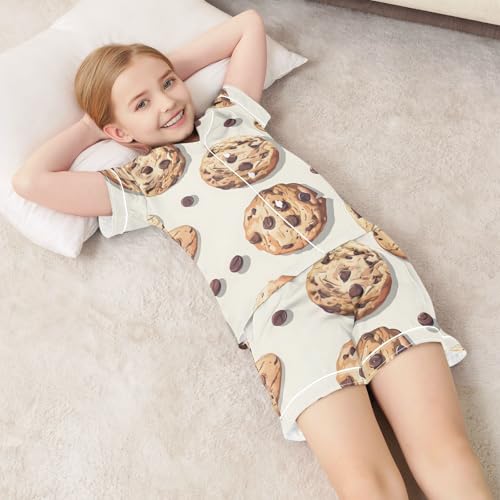 Satin Pajama Sets Short Sleeve Cookie Pattern with Chocolate Chips Button Down Silky Nightwear 2 Piece PJS 5-14Y 7