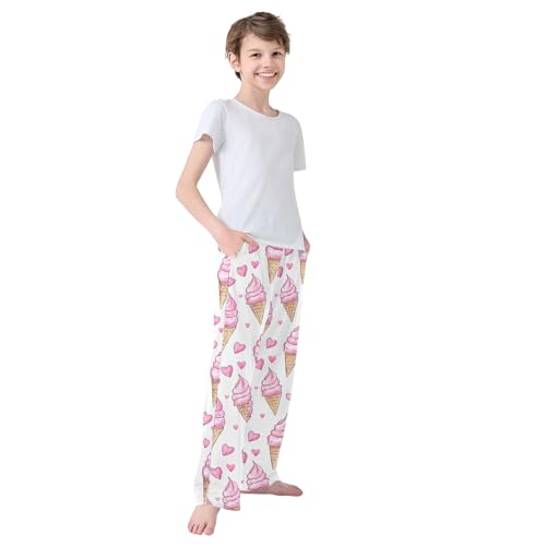 Ice Cream Pink Pattern Pajama Pants Lounge Sleep Pants Elastic Waist Long Pajama Bottoms with Pockets for 6-14 Years 1