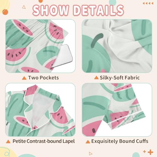 Satin Pajama Sets Short Sleeve Watermelon Slices on White Background Button Down Silky Nightwear 2 Piece PJS 5-14Y 3