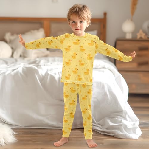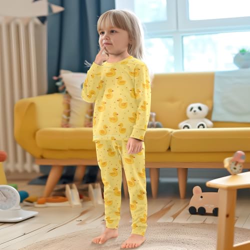ALAZA Yellow Duck Cartoon 2 Piece Pajama Set Long Sleeve Top and Pants Sleepwear Unisex 2