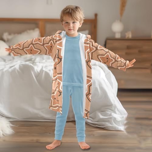 HOT ! Gingerbread Star Seamless Pattern Girls Robe With Hood Robe For Girls