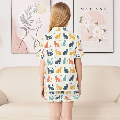 Small Cute Cat Satin Summer Pajama Sets Silk Short Sleeve Button Down Sleepwear 6