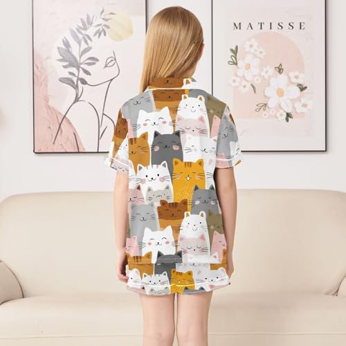 Cute Colored Cats Pajamas Set Soft Pjs Sets 2 Piece Short Sleeve Sleepwear Casual Loungewear 6