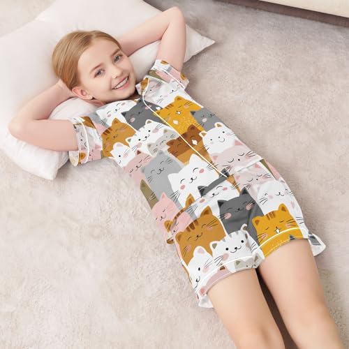 Cute Colored Cats Pajamas Set Soft Pjs Sets 2 Piece Short Sleeve Sleepwear Casual Loungewear 2