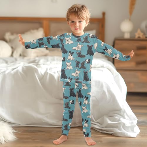 Pajamas Sets Cartoon Bulldog Pattern Sleepwear Long Sleeve Pants 2