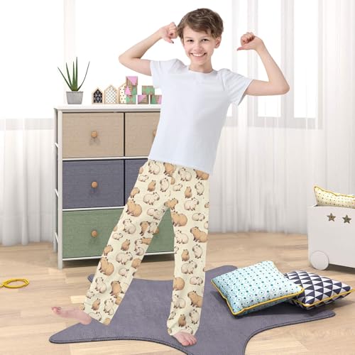 HOT ! Cartoon Capybaras Pajama Pants Lounge Sleep Pants Elastic Waist Long Pajama Bottoms with Pockets for 6-14 Years