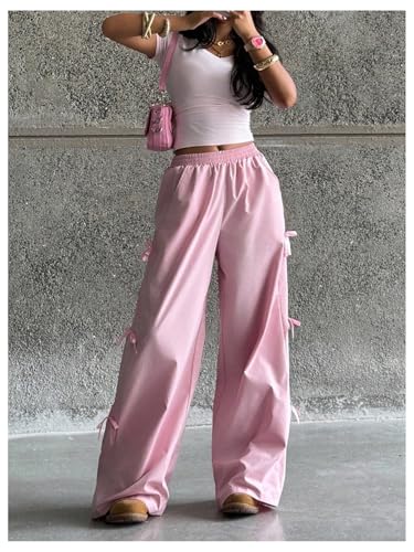 HOT ! SOLY HUX Girl's Baggy Sweatpants Y2k Bow Elastic Waist Wide Leg Long Pants with Pockets