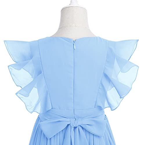 IWEMEK Chiffon Flower Girl Dresses Flutter Sleeves Long Dress Wedding Pageant Bridesmaid Ball Gown A Line Floor Length Dress 5