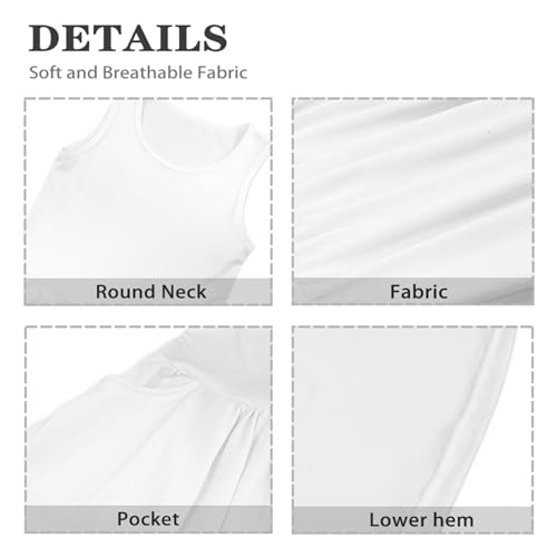 • FEATURE: One-piece, Sleeveless, Crewneck, Twirly swing, A-line pleated dress with pockets, Elastic waist for perfect wearing.