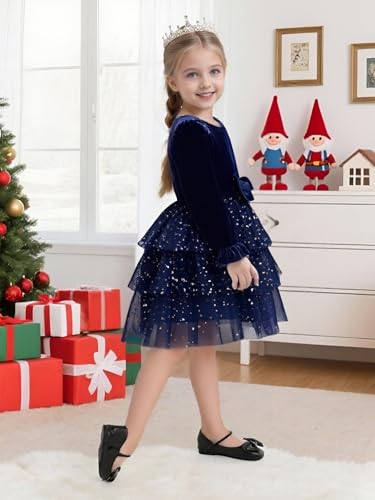 2-7Y Toddler Girls Fall Winter Velvet Tulle Tutu Dresses Long Sleeve Ruffle Holiday Christmas Princess Party Dress 6