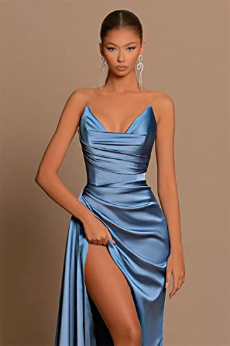 More information about Satin Mermaid Prom Dresses for Women Long Ruched Strapless Corset Formal Wedding Guests Dresses with Slit
