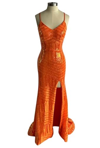 HOT ! Women Mermaid Sequin Prom Dresses for Women Sparkly V Neck Formal Evening Dress with Slit