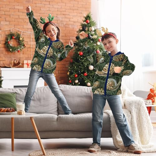 Snail Pattern on Green Toddler Fleece Jacket Girl Boys Hooded Fleece Jacket Coat Warm Outwear Zip-up 3-10T 4