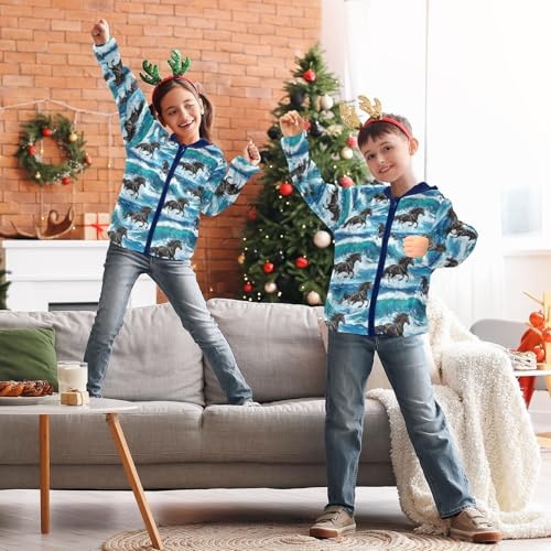 CHIFIGNO Black Horses Ocean Waves Kids Soft Comfy Sweatshirt Jacket with Polar Fleece Lining 3T 5