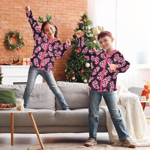 Pink Blocks Black Spotted Girls Fleece Jacket Girls Fall Jacket Girl Coats Zip Up Hoodie Children Sherpa Warm Outerwear 2-10T 4