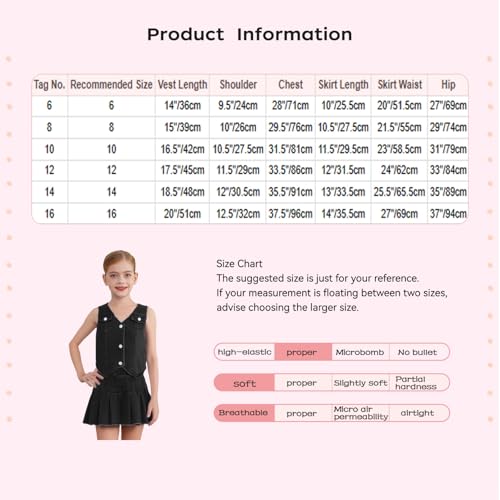 Linjinx Kids Girls Denim Vest Button Down Asymmetrical Hem Jeans Waistcoat Jacket Outerwear with Pleated Skirt Set 5