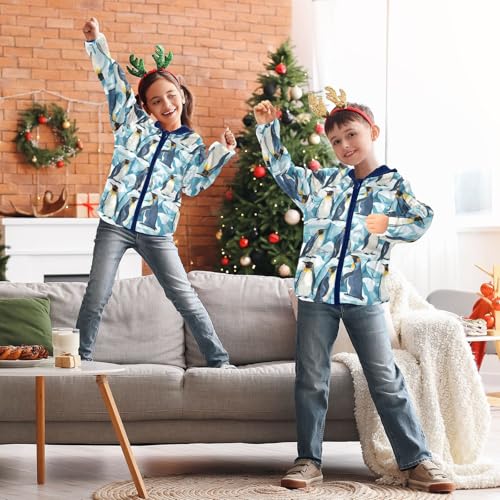 Penguins and Glaciers Girls Fleece Jacket Girls Fall Jacket Boys Coats Zip Up Hoodie Children Sherpa Warm Outerwear 2-10T 3