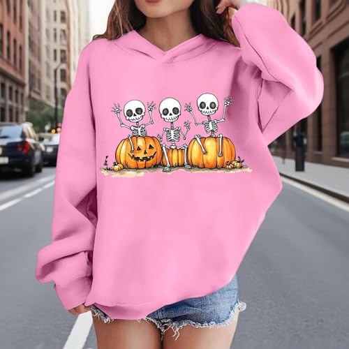 HOT ! Girls Casual Hooded Sweatshirt Halloween Graphic Hoodies Long Sleeve Oversized Pullover Tops Trendy Fleece Clothes