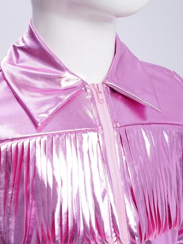 easyforever Kids Girls Sequin Tassel Bomber Jacket Long Sleeve Dance Coat Performance Outerwear for Concert Party Club 4