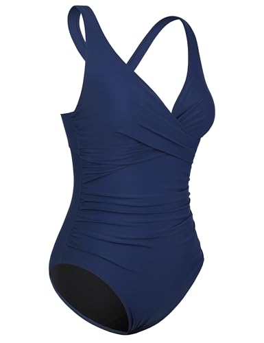 HOT ! Mycoco Underwire Swimsuit for Women V Neck Bathing Suits with Adjustable Wide Straps Ruched Tummy Control One Piece Swimsuit
