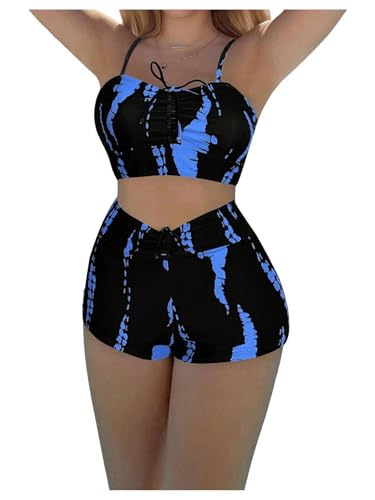 SHENHE Women's Tie Dye Tankini Swimsuits High Waisted Tummy Control Bikini Sets 3