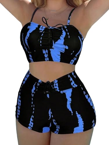 SHENHE Women's Tie Dye Tankini Swimsuits High Waisted Tummy Control Bikini Sets 2