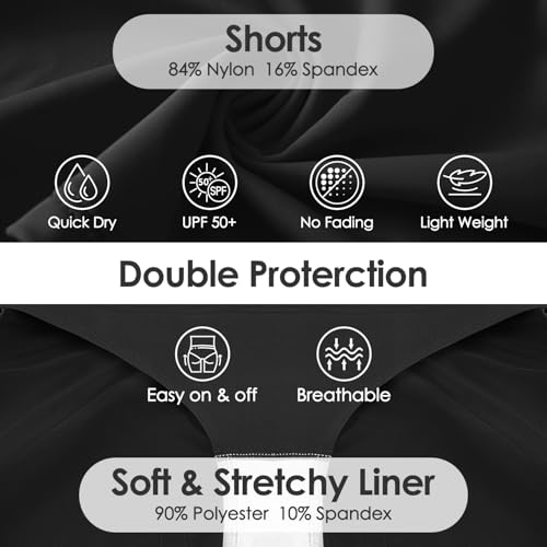 • Quick-drying and Waterproof --- The swim trunks are made of 84% nylon and 16% spandex fast-drying fabric with UPF50+ sun protection index. It provides enough coverage for your body and protects the skin from sunburn or abrasion. Even after exercise, it will keep you comfortable all day long, wet or dry, perfect for swimming, surfing, water activities, running, working out or everyday wear!