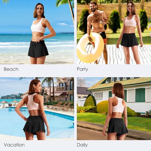 Womens Swim Shorts, Stretchy High Waisted Flowy Beach Skirt Quick Dry Board Shorts Swimsuit with Zipper Pocket 4