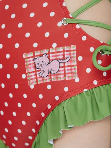 • ​Officially Licensed Nostalgic Design​:This one-piece swimsuit celebrates Strawberryland’s charm with vibrant red and white retro polka dots, playful strawberry-shaped appliqués on adjustable side straps, and delicate green lace accents along the neckline and hem. Includes ​1 swimsuit​ for a bold, feminine summer look.