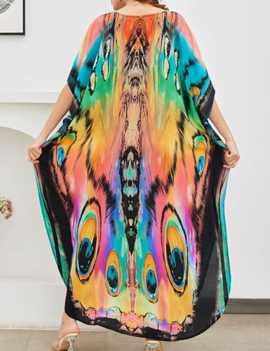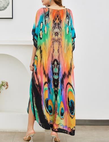 • Beautiful colorful butterfly printed maxi caftan dress for women, flattering, flowy and chic for beach