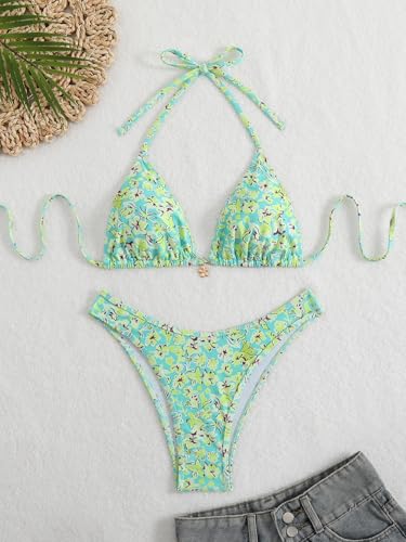 More information about Women's High Waist Ditsy Floral Print Bathing Suit Halter Summer Swimsuit Bikini Set