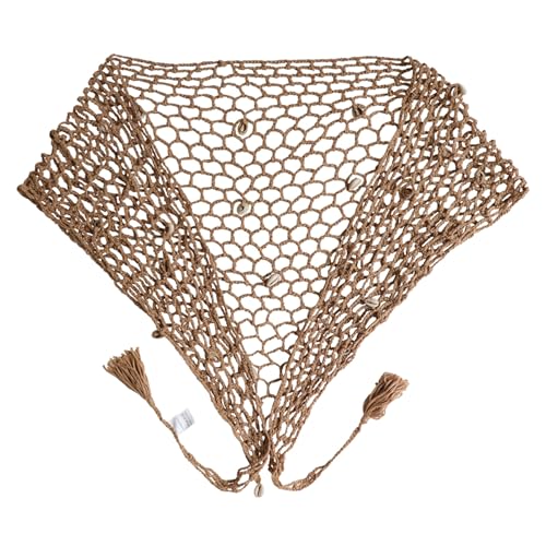 • Khaki Swimwear Cover Up,Sexy Fashion Beach Hand Crochet Shawl Capelet Cover Up Sunscreen Net Triangle Fishnet Skirt 59in*31.5in