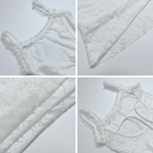 • SEE-THROUGH COVER UP DRESS: This white lace maxi dress is a see-through design, so it's great with bikini sets, pretty bras, pasties, panties, underwear set, tank tops, bralettes, tube tops, camisoles, crop tops, sexy thongs, etc.