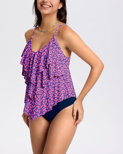 • Design: This flowy tankini swimsuits top with a removable padding bra, easily adjustable straps, V neck design, paired with high-waist period swim bottoms, the fluffy design looks very cute and comfortable.