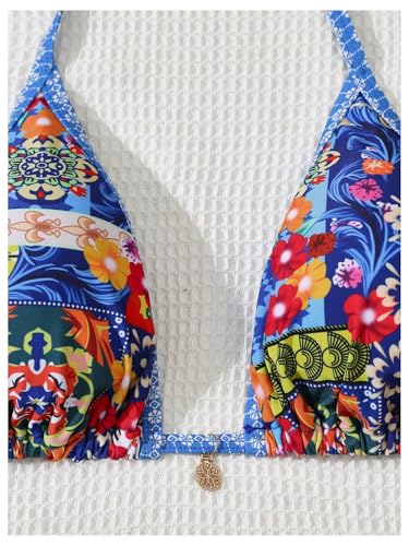 MakeMeChic Women's Plus Size 2 Piece Boho Floral Bikini Set Halter Paisley String Summer Swimsuit Bathing Suit 4